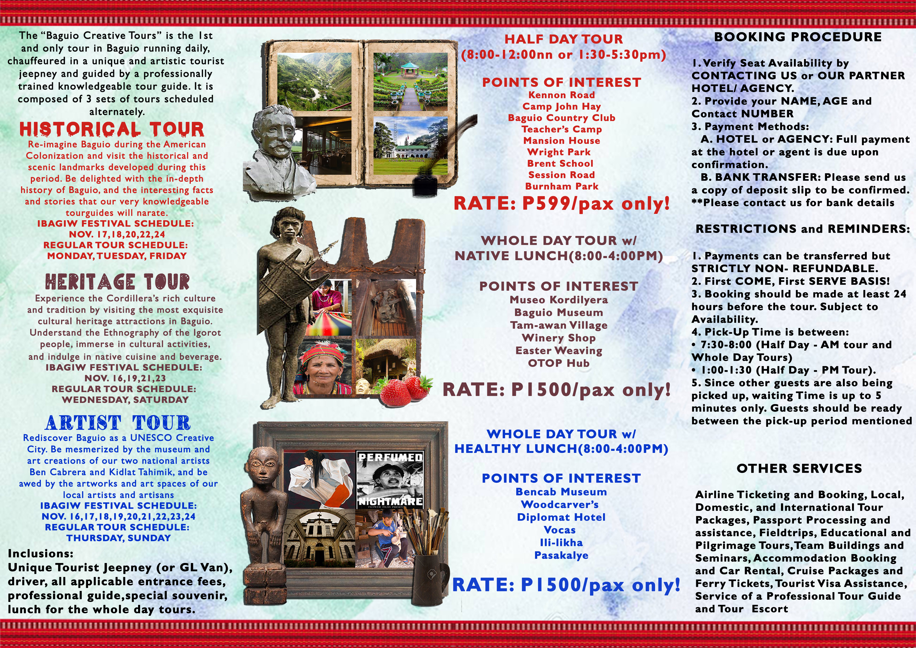 The Baguio Arts & Crafts Collective, Inc. (BACCI), the organization assigned by the City of Baguio to be at the helm of the staging of the festival, also aims to be able to explore the possibility of establishing the Baguio Heritage Hill & Nature Park as the city’s permanent arts and culture center.